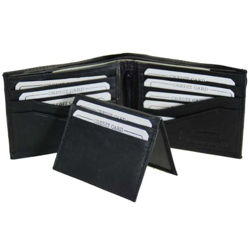 Material: Genuine Leather Bi-foldSize: 9? x 3.5?Credit Card Slots: 14+I.D. Window: YesCurrency Pocket: Divider, Hideaway zippered pocketOther features: Removable I.D. Badge with removable plastic credit card holder; Internal centered zippered pocket; 2 spots for key holder; Slots on either side under credit card holderCustomer Reviews